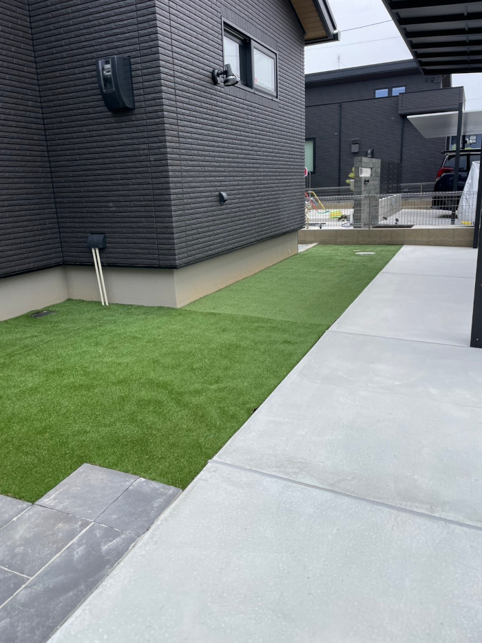 人工芝が映えるおしゃれでスタイリッシュな新築外構