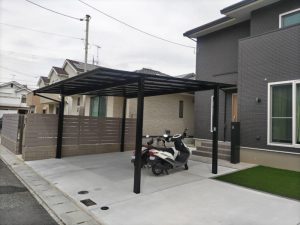 フラットスタイルの2台駐車可能なカーポートを設置しました。