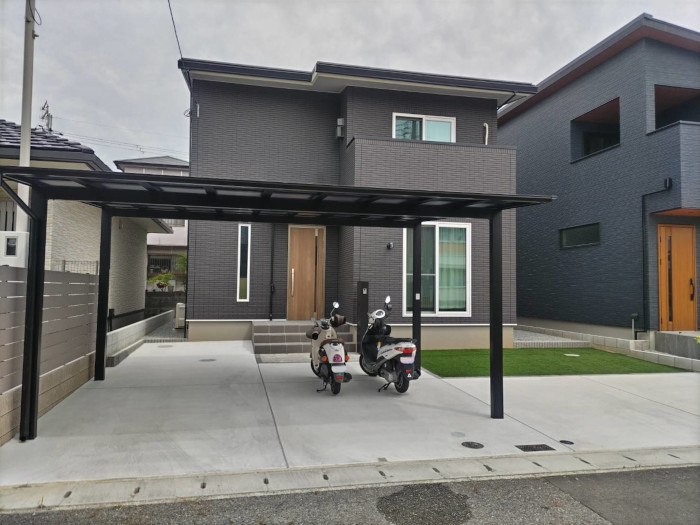 フラットスタイルの2台駐車可能なカーポートを設置しました。