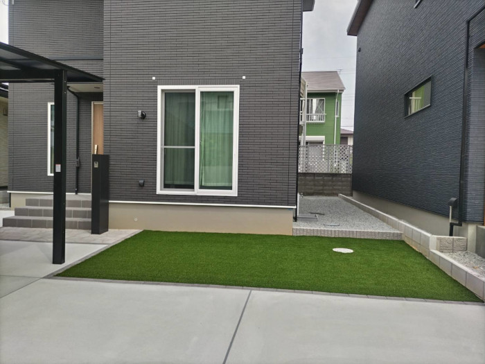 人工芝を敷設し、バーベキューやお子様のプールなど自由に使えるスペースにしました。